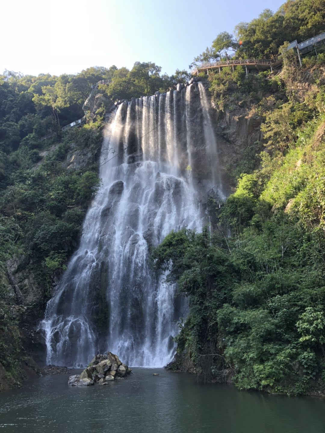 從“秋水共長天一色”的清遠北江出來,來到了清遠4A級景區古龍峽。正所謂:“秋景引閑步,山游不知疲”,在古龍峽清爽涼快的山風里,沿著綿延的山路徐徐的向前。從山腳下可以看到古龍峽谷上有一條玻璃吊橋,宏拓儀器的同事們一起順著充滿仙氣的山路,一邊欣賞山道兩旁的景色,一邊向著玻璃吊橋緩緩前進,到達玻璃吊橋后,不僅可以從吊橋上欣賞古龍峽的優美景色,也可以從這透明的橋上慢慢走過,測試一下自己的膽量,如果覺得行走在玻璃吊橋上意猶未盡的話,還可以去到位于山頂的玻璃觀景臺上再眺望古龍峽更壯闊的景色。享受完古龍峽的自然景色后,大家帶著愉快的心情和疲憊的身體回到了酒店休息,準備第二天的行程。