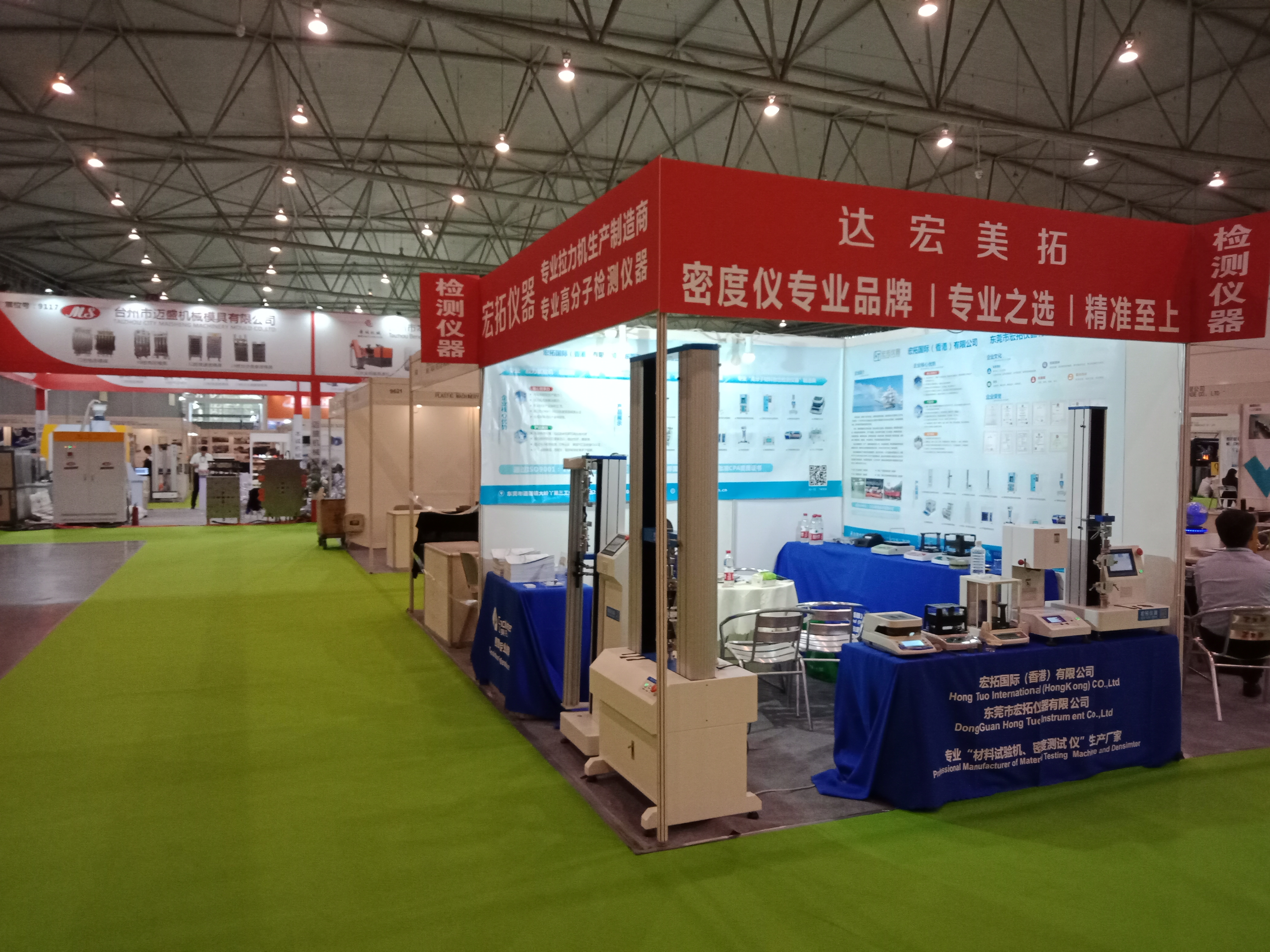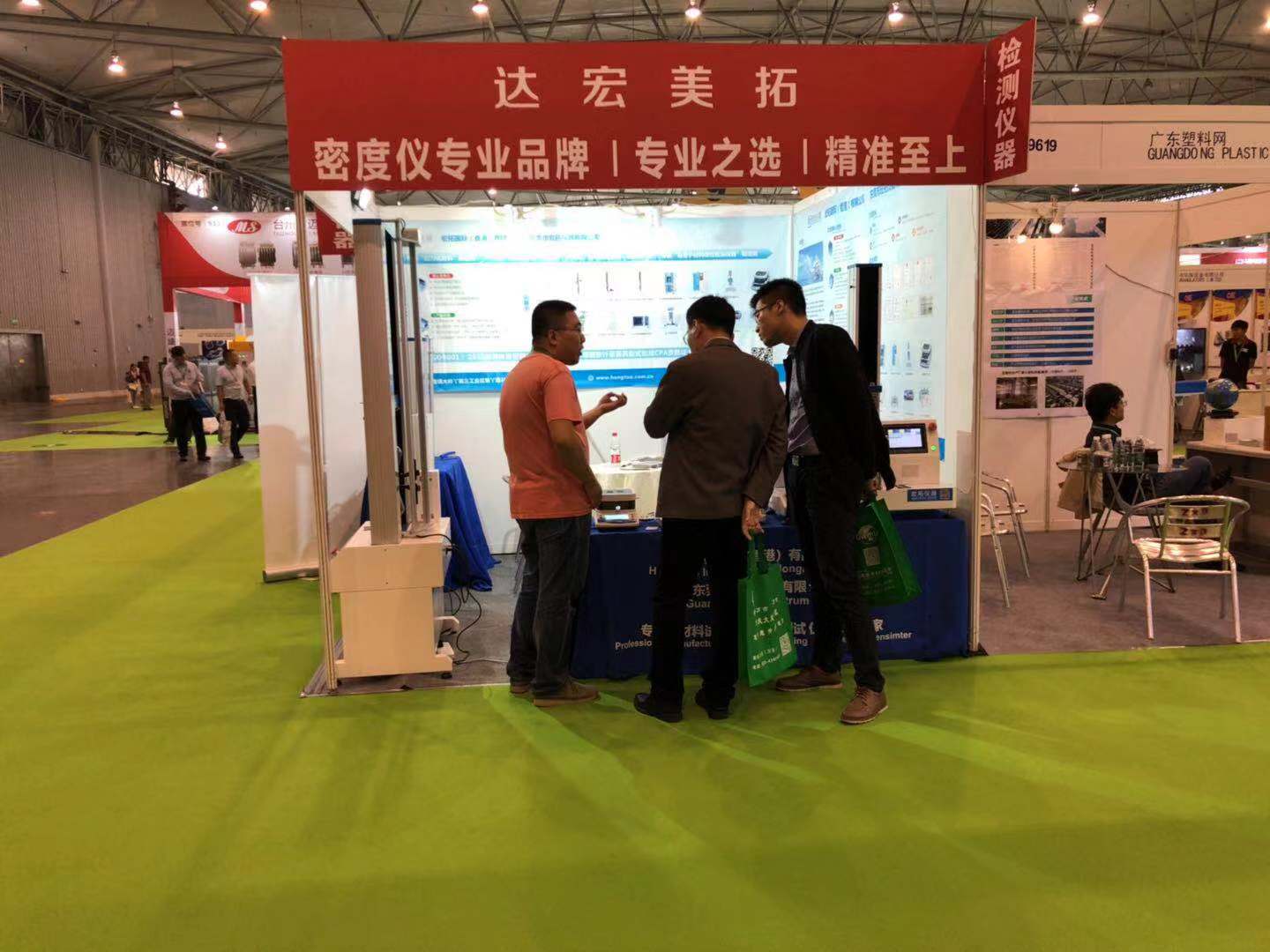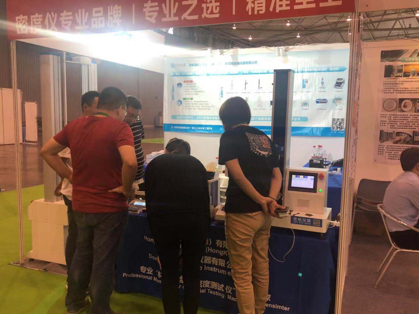 在本次展會上,東莞市宏拓儀器有限公司展出了自主生產的拉力試驗機,密度測試儀,高分子材料物性檢測儀器等企業工廠試驗室標配測試儀器,針對生產企業在拉力測試和物理性能測試中面臨的需求、效率、成本等問題,提供了切實有效的解決方案。歷時3天(10月10-13日)的展會,宏拓儀器展臺吸引了無數參展者的駐足,而工作人員也始終以飽滿的熱情、耐心地與參展者溝通,產品的特色和優勢在宏拓儀器工作人員精彩的演說及演示下展現得淋漓盡致,會場上的專業觀眾及參展企業對產品有一定了解之后,對宏拓儀器所展出的測試儀器表示了極大的興趣,很多客戶都現場進行了詳細咨詢,希望通過這次機會進行深入合作。