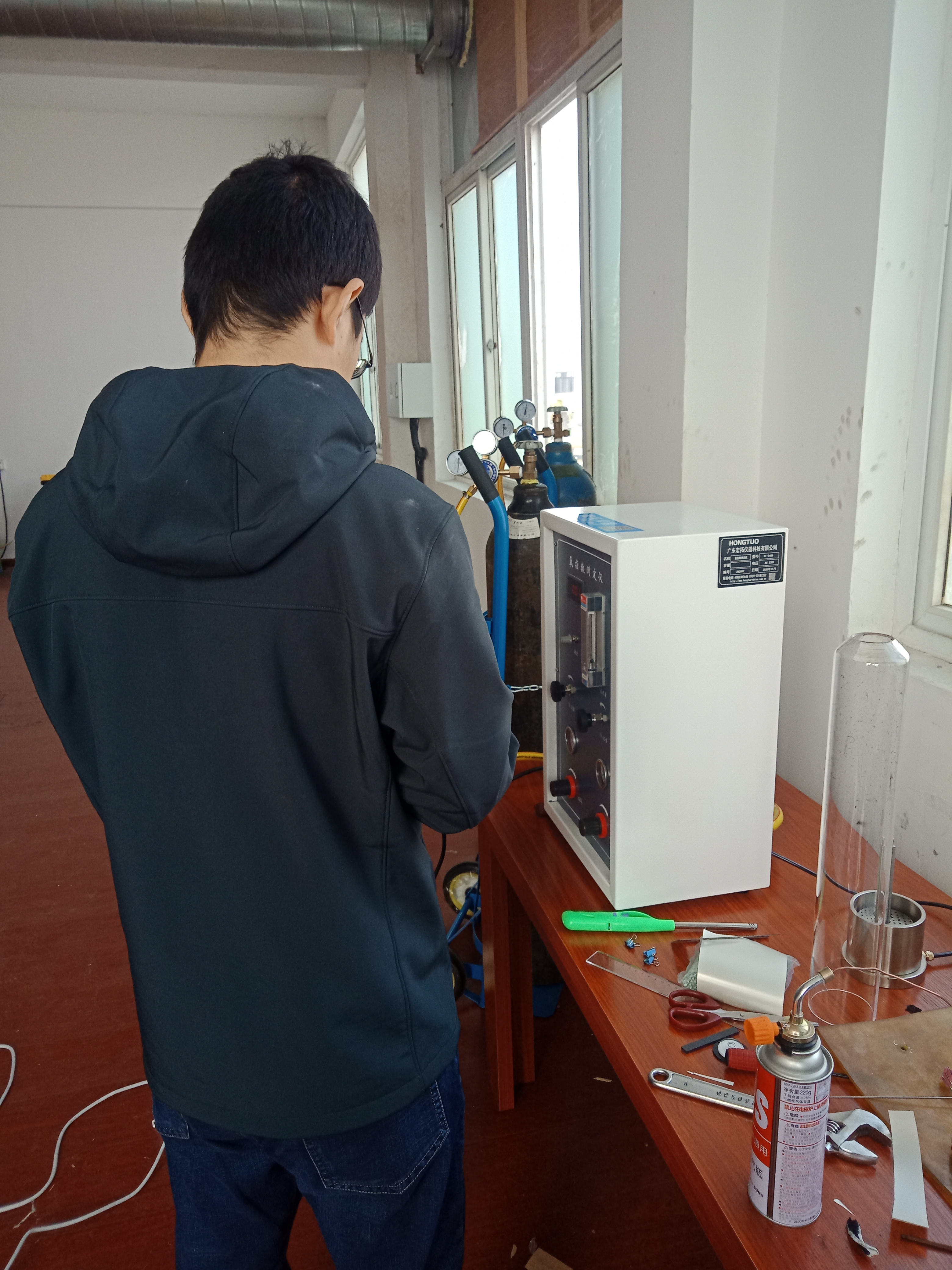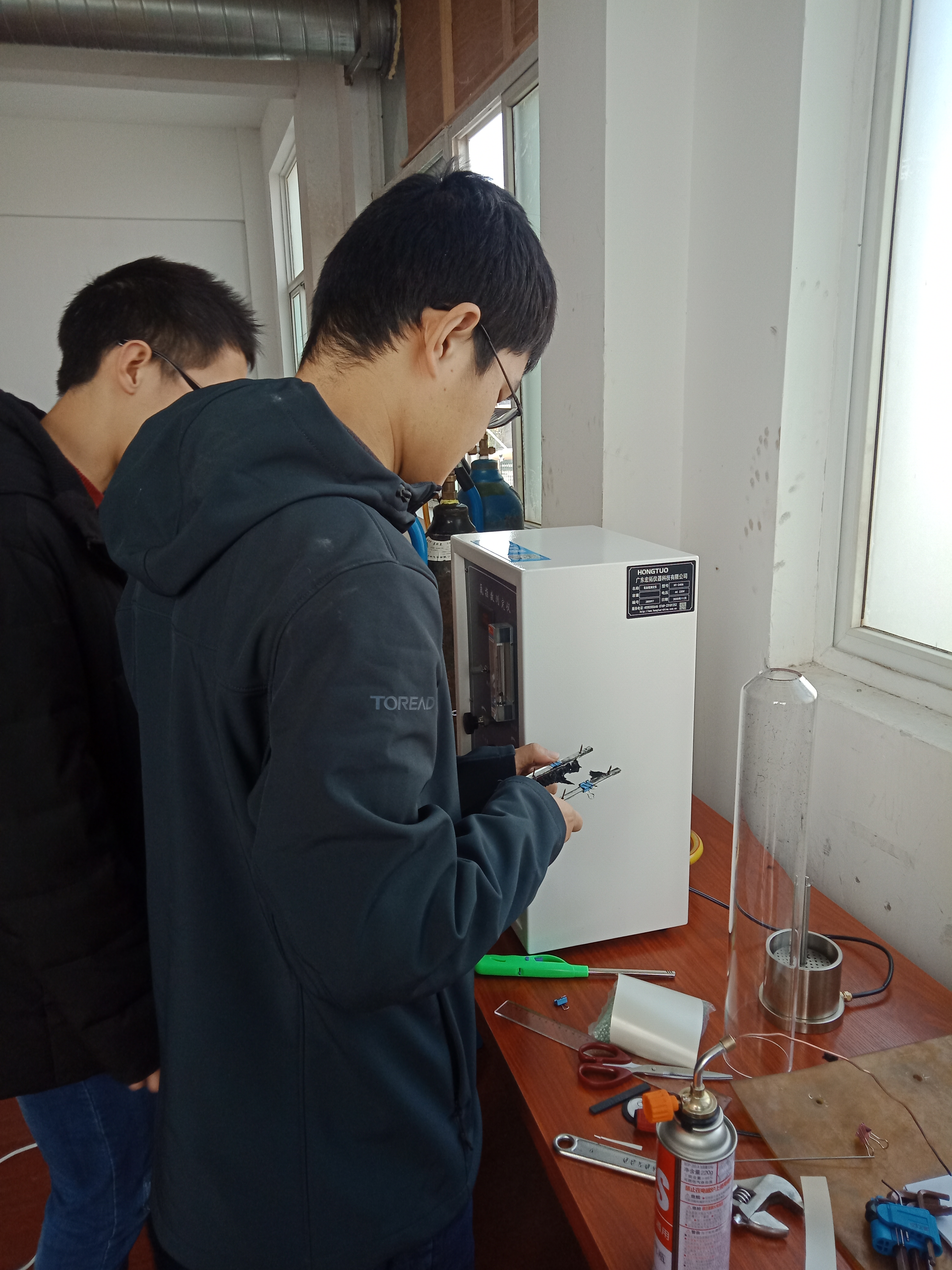 寧波聚嘉實驗室工作人員正在學習使用氧指數測定儀