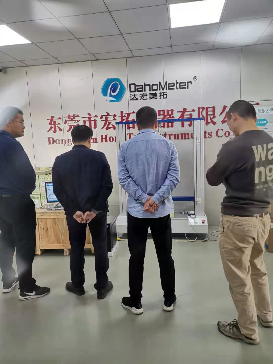 2021年3月11日,湖北麥德利航空材料科技有限公司蒞臨廣東宏拓儀器科技有限公司參觀和驗收訂購的HT-140SC-5加寬型拉力試驗機,現場觀看HT-140SC-5加寬型拉力試驗機進行的泡棉壓縮測試和海綿壓縮測試,對HT-140SC-5加寬型力學試驗機的壓縮測試功能表示肯定和驗收成功。