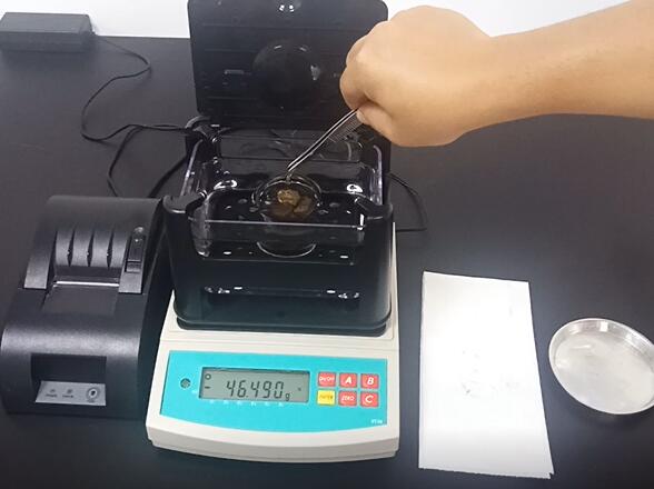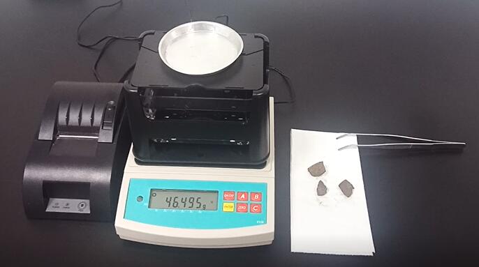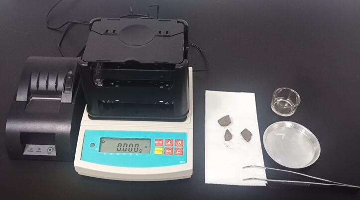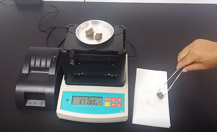 1、準備一臺固體密度計(做好砝碼校正和水溫補償)和礦石樣品(取一些小樣石頭)。如圖