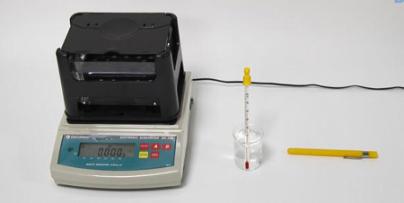 密度測試儀溫度補償原理:利用蒸餾水作測量介質(zhì)時,蒸餾水的密度會隨溫度而改變,同樣也會造成樣品密度的改變;在理論上蒸餾水在4℃時,密度值是無限接近1.0000;但實際測量中,蒸餾水的溫度無法一直保持在4℃的狀態(tài)下,所以測量過程中需利用溫度計測得實際水溫并設(shè)定存儲,是計算樣品絕對體積的基礎(chǔ)。本機已將蒸餾水的密度值從攝氏0℃到39℃都記憶在主機內(nèi)存中,只要進入設(shè)定程序?qū)⒄麴s水的水溫修改成實際溫度即可。